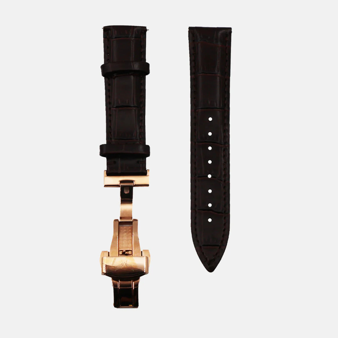 An embodiment of a master Italian leather craftsman: the AUDEAMUS strap is made with top grain leather (known for its softness & durability). It is not only remborde, but also cushioned for extra comfort.