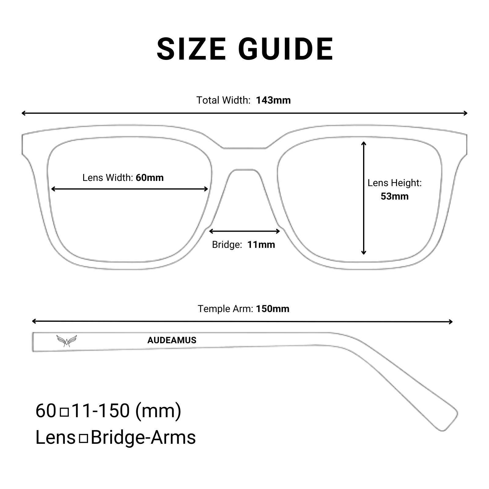 DIMENSIONS: 60x11x150 (mm) (LensxBridgexArms)