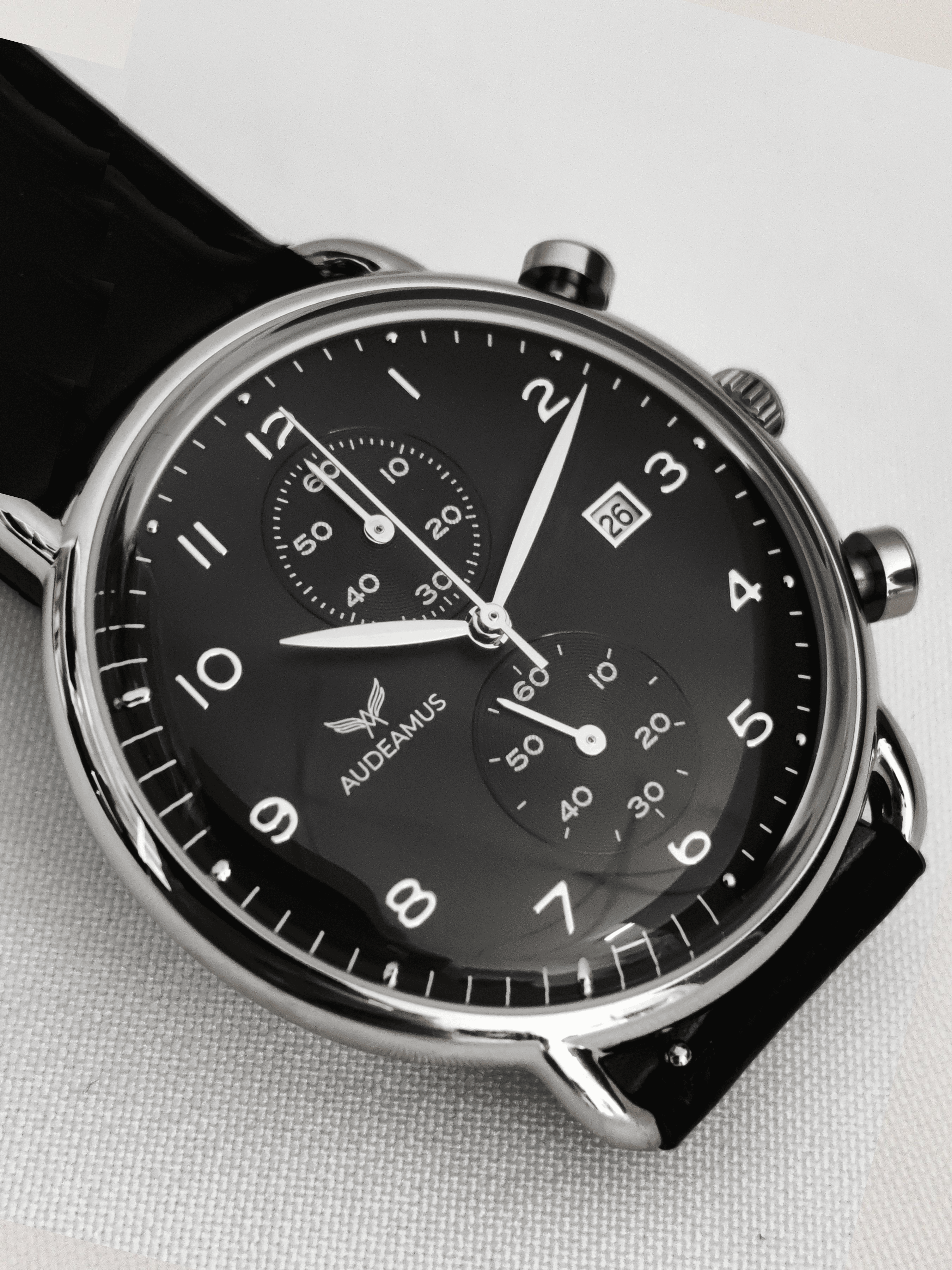 An embodiment of a master Italian leather craftsman: the AUDEAMUS strap is made with top grain leather (known for its softness & durability). It is not only remborde, but also cushioned for extra comfort.