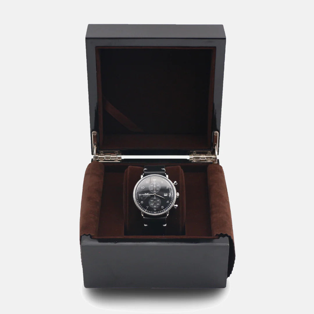 Our timepieces come in a fine piano lacquered wooden box: lined with velvet that will protect your timepiece beautifully.